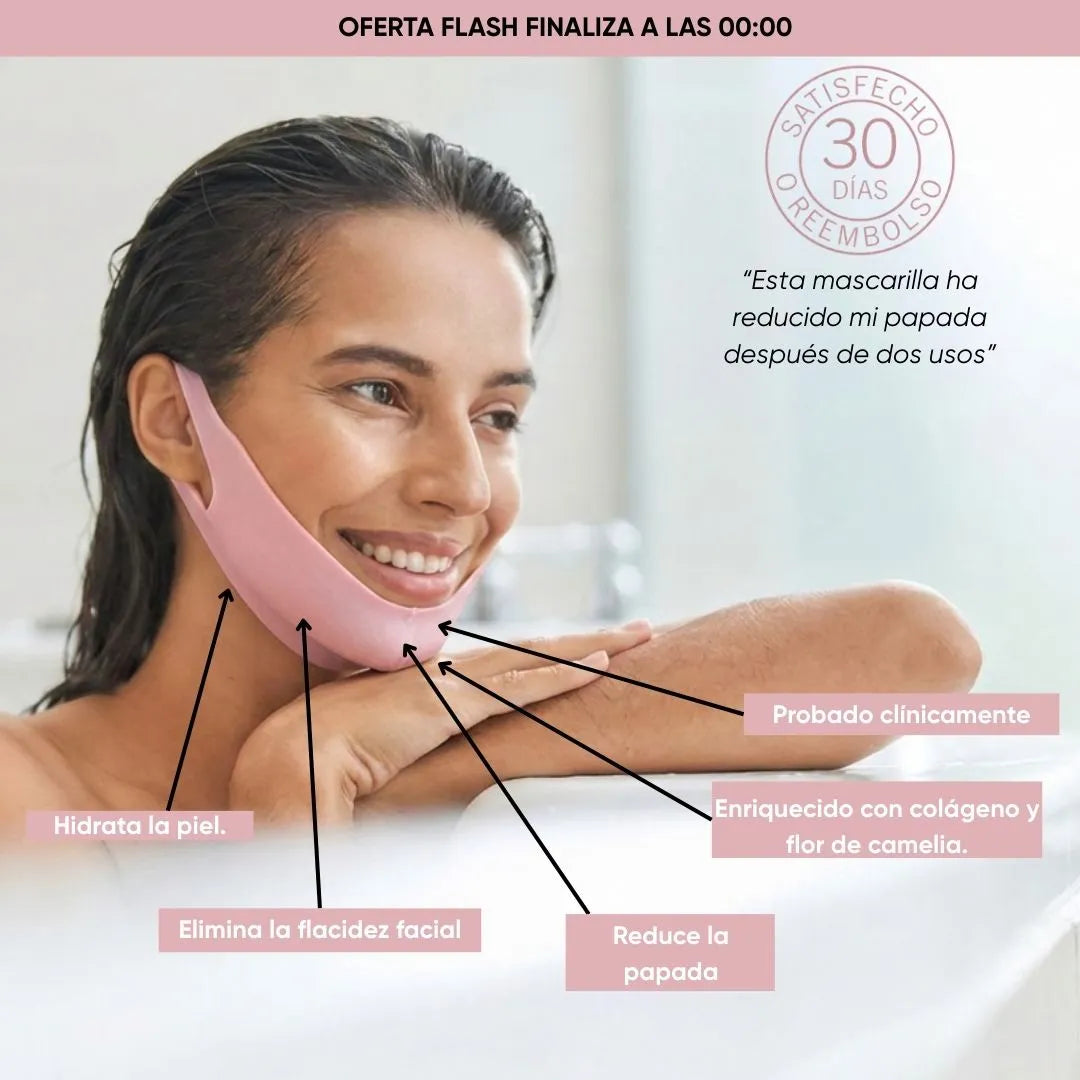 Esta mascarilla lifting está diseñada para reafirmar y redefinir el óvalo facial, la mandíbula y el cuello. |